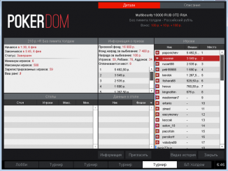 оказывается более выгодным, чем в аналогичных мероприятиях на крупных покерных сайтах, так как количество участников в них не превышает 500 человек. В больших покер-румах на сумму в 20-30 долларов претендуют несколько тысяч игроков, в итоге выигрыши в ПокерДом оказываются большими. Стоит еще принимать во внимание низкий уровень мастерства подавляющего большинства клиентов покер-рума. Все это позволяет игроку с наличием определенного опыта иметь хорошие шансы на выход в призовую зону.