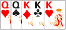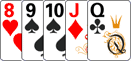 Состоит он из карт, которые располагаются в порядке возрастания (убывания) старшинства и имеют одинаковую масть: от 10 до туза.