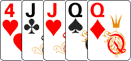 Он состоит из любых пяти карт любой масти, которые размещены последовательно. Например, 2-3-4-5-6.